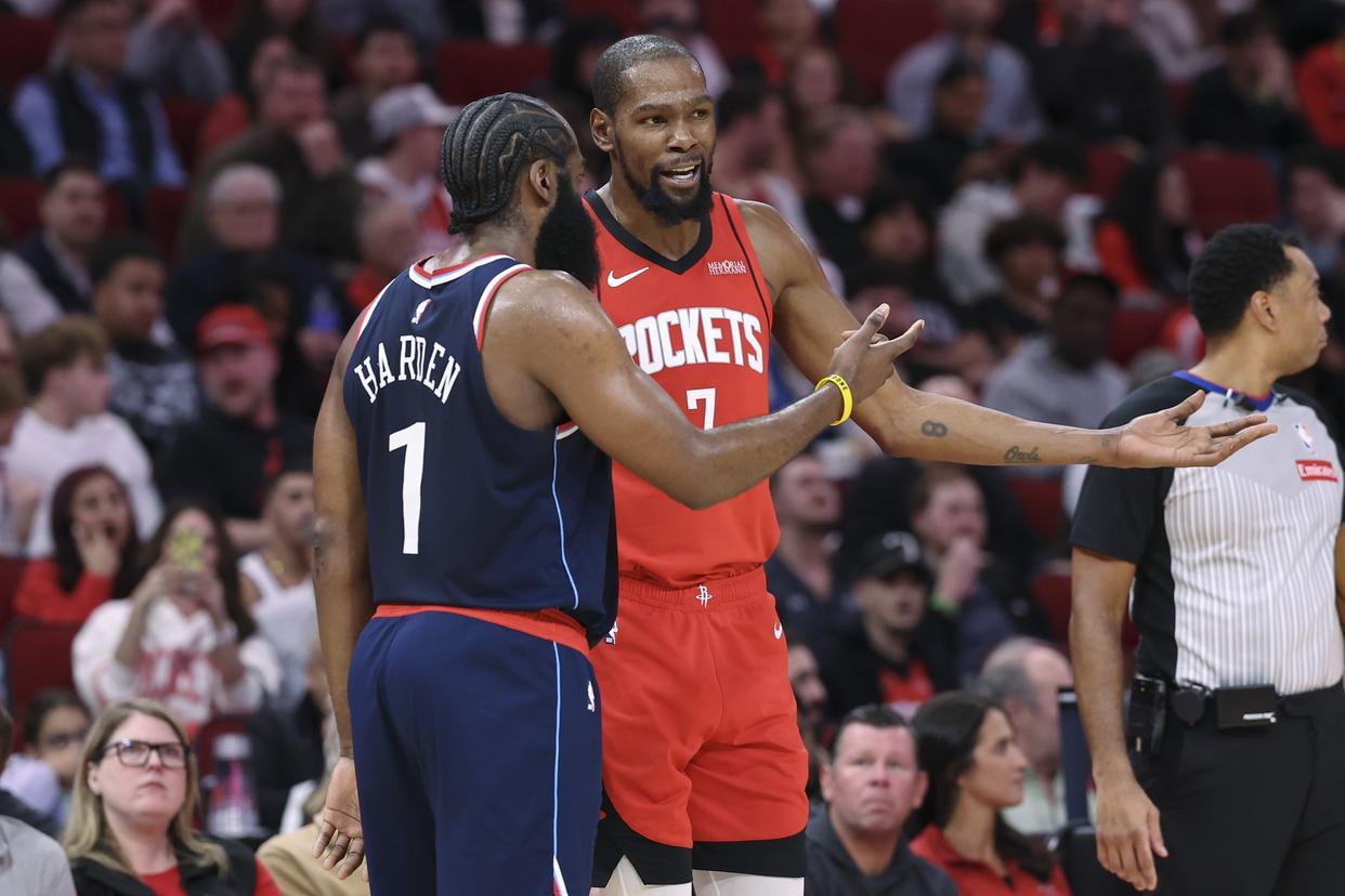 下一场比赛,火箭队的对手是金州勇士队。上赛季火箭队就败在了勇士队手里,在季后赛里第1轮就被淘汰出局。其实那时候火箭队可是西部第二,但是对阵西部第七,火箭队最终在抢七大战当中被对手淘汰,只能饮恨出局。火箭队肯定还憋着一口气,所以他们在本赛季升级了阵容,他们将后卫杰伦·格林和小前锋狄龙·布鲁克斯打包送到了太阳队,换来了太阳队37岁的顶级巨星凯文·杜兰特。本赛季火...