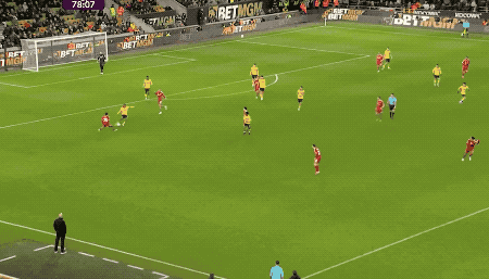 第78分钟,狼队打出快速反击,在和范戴克的对抗中,阿洛克达尔有一个推人动作,罗德里戈·戈麦斯冷静破门,狼队主场取得领先。